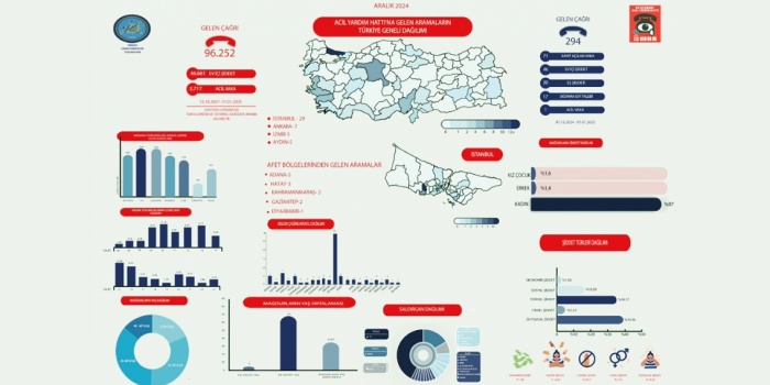 Türkiye Kadın Dernekleri Federasyonu (TKDF) “Ev İçi Şiddet Acil Yardım Hattı Aralık 2024 Veri Ve Analiz Raporu”nu yayınladı. Rapora göre 2024’ün Aralık ayında acil yardım hattı 294 çağrı aldı. 15 Kasım 2007’den Aralık 2024’e kadar acil yardım hattına gelen toplam çağrı ise 96 bin 252, bu çağrıların 46 bin 661’i ise ev içi şiddeti ihbar etmek için yapıldı.