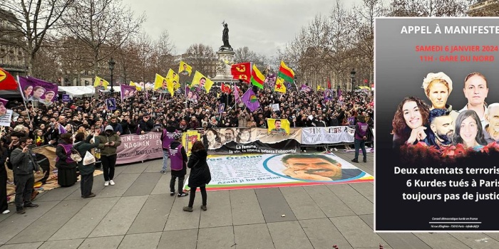 - Kürtler ve dostları Paris katliamlarının aydınlatılması, perde arkasında katliamı organize eden Türk devletinden hesap sormak için Paris’te bir araya geliyor. KCDK-E, KON-MED, CDK-S ve YJK-S “2013’ten 2024’e Paris Karanlıkta, Adalet Nerede?” sloganı ile Kurdistanlıları Paris’teki merkezi yürüyüşe taşıyacak.