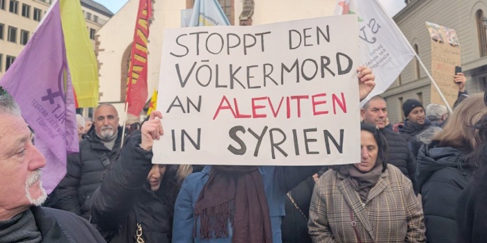 İsviçre’nin Basel ve Cenevre kentlerinde düzenlenen protestolara çok sayıda Kürt ve Alevi yurttaş katıldı. Basel’de Avrupa Demokratik Güç Birliği'nin (ADGB) çağrısıyla Barfüsser Meydanı’nda yapılan açıklamada, 14 yıldır süren savaşın milyonlarca insanı yerinden ettiğine ve HTŞ yönetiminin halklara ortak yaşam alanı bırakmadığına dikkat çekildi.
