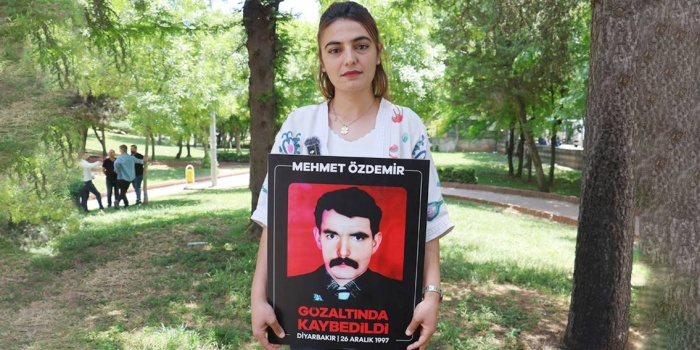 Sozdar Özdemir, zorla kaybettirilen babasının fotoğrafını kucağına alarak İnsan Hakları Derneği (İHD) Amed Şubesi’nin her hafta düzenlediği “Kayıplar Bulunsun Failler Yargılansın” eylemine katılan isimlerden. Henüz bir buçukken, babası Mehmet Özdemir 26 Aralık 1997 tarihinde silahlı iki kişi tarafından kaçırıldı ve 27 yıldır akıbeti bilinmiyor.