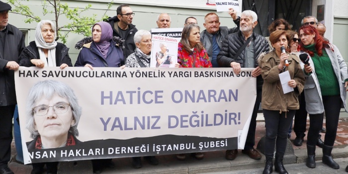 İnsan Hakları Derneği (İHD) İstanbul Şubesi Hapishaneler Komisyonu, tutsaklara para gönderdiği için "örgüte finans sağlamak" iddiasıyla tutuklanan üyeleri Hatice Onaran için başlattığı para gönderme kampanyası sürüyor. Bu kapsamda dün İHD İstanbul Şubesi önünde yapılan açıklamada, "Hak savunucularına yönelik yargı baskısına son. Hatice Onaran yalnız değildir" pankartı açıldı. Açıklamanın ardından birçok cezaevine Hatice Onaran’a gönderilen paraların akıbetini sormak için dilekçe gönderildi.