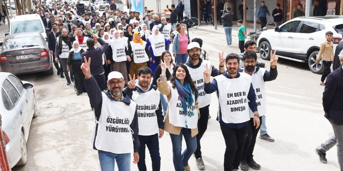 Halkların Eşitlik ve Demokrasi Partisi (DEM Parti) Gençlik Meclisi'nin, “Demokratik Toplumla Özgürlüğe Yürüyoruz” şiarıyla gerçekleştirdiği yürüyüş, dün öğle saatlerinde Riha’nın Pirsûs (Suruç) ilçesinde devam etti. DEM Parti Pirsûs İlçe Örgütü önünde bir araya gelen gençler, “Bijî Serok Apo”, “Bê Serok jiyan nabe” ve “Gençlik Apo’nun fedaisidir” sloganları eşliğinde Amara Kültür Merkezi'ne doğru yürüyüşe geçti. Yol boyunca slogan, zılgıt ve alkışlar dinmezken, ilçe esnafı zafer işareti, alkış ve sloganlarla gençlere destek verdi. Araçlar ise korna çalarak yürüyüşçüleri selamladı.