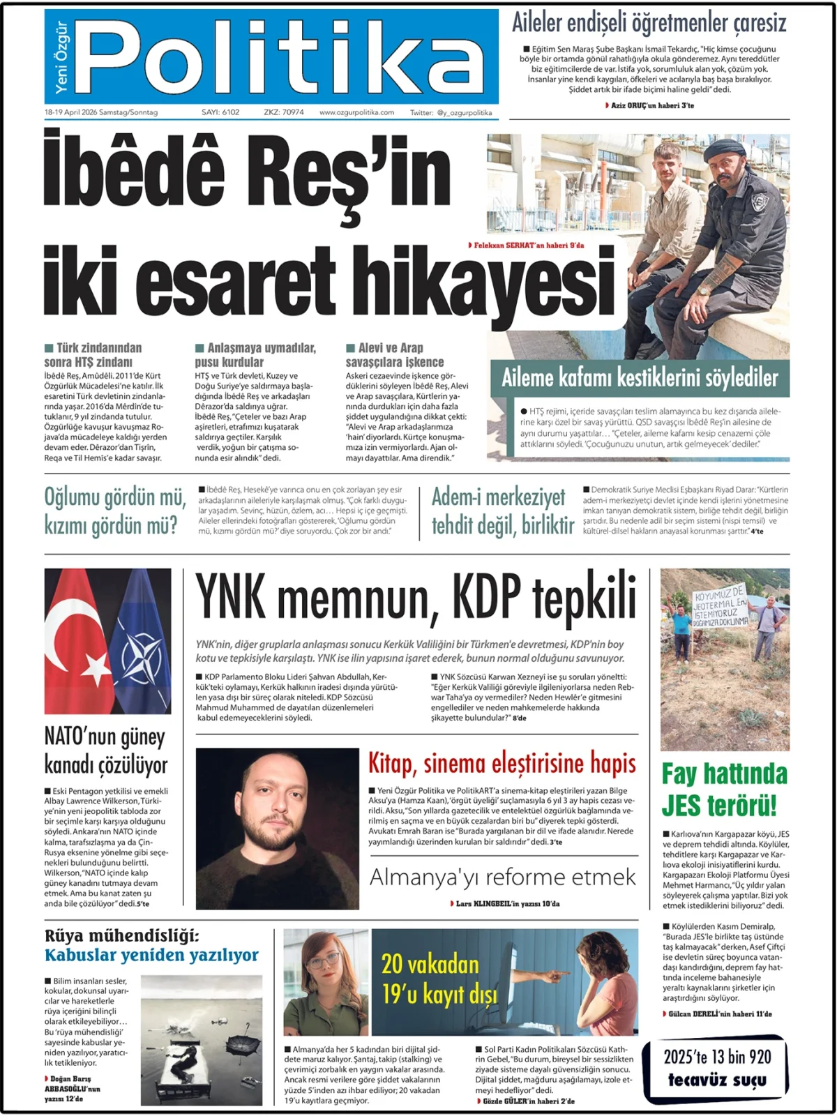 Dêrazor’da esir alınan QSD savaşçısı İbêdê Reş Amûdê ile tutukluluk sürecini, cezaevindeki direnişi ve özgürlüğüne kavuştuğu anları konuştuk:Dêrazor’d...© Copyright 2026 Yeni Özgür Politika | Tüm Hakları Saklıdır.