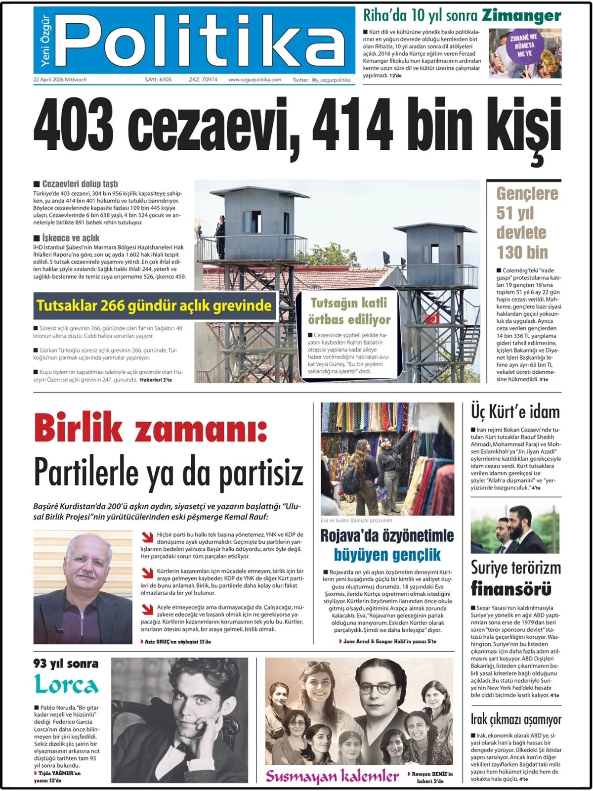 Halk Cephesi Genel Başkanı Lahur Şeyh Cengi ve kardeşi Polad Cengi, cezaevinde açlık grevine başladı. Cengi, YNK Başkanı Bafil Talabani ve Kürdistan B...