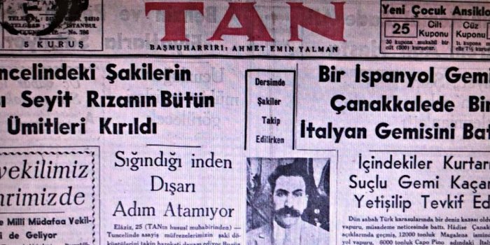 26 Haziran 1937 tarihinde Cumhuriyet gazetesi birinci sayfadan şu haberi yapar: