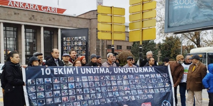 Emek ve demokrasi güçlerinin 10 Ekim 2015’te Ankara Gar Meydanı’nda düzenledikleri “Barış ve Demokrasi” mitingine yönelik bombalı saldırıda şehit düşenler anıldı. Katliamın 98’inci ayı dolayısıyla gar önünde yapılan açıklamaya, Kamu Emekçileri Sendikaları Konfederasyonu (KESK), Türk Mühendis ve Mimar Odaları Birliği (TMMOB), Devrimci İşçi Sendikaları Konfederasyonu (DİSK), Türk Tabipleri Birliği (TTB) ile 10 Ekim Barış ve Dayanışma Derneği’nin (10 Ekim-Der) yönetici ve üyeleri katıldı.