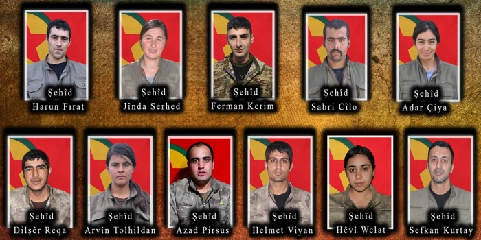 11 yoldaşımızın da kimyasal silahla şehadete ulaştığı kesin olup görüntülenerek belgelenmiştir. Bu görüntüleri kamuoyu ile paylaşmayı şu an için uygun görmemekle beraber, inceleme yapacak ve Türk devletinin savaş suçlarını teyit edebilecek ilgili kurumlara verebileceğimizi belirtiyoruz. Bu yoldaşlarımızın şehadete ulaştığı yerin Başurê Kurdistan’ın Amediyê ilçesinin Şêladizê nahiyesine bağlı Saca köyü yakınında olduğunu, gelmek isteyenlerin rahatlıkla ulaşabileceklerini ve inceleme yapmak isteyenlere imkanlar dahilinde yardımcı olabileceğimizi beyan ediyoruz.