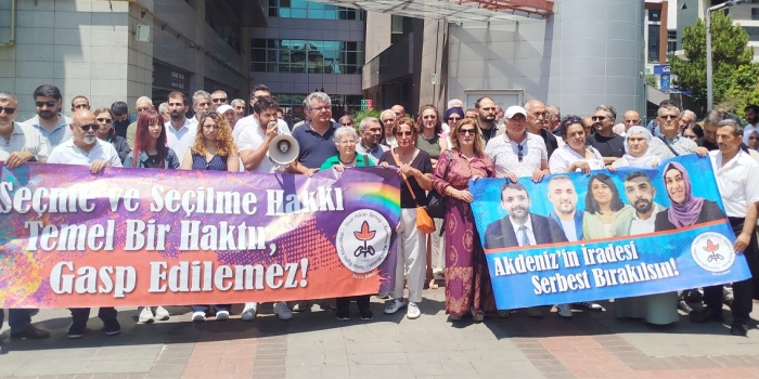Özgürlük İçin Hukukçular Derneği (ÖHD), Çağdaş Hukukçular Derneği (ÇHD), İnsan Hakları Derneği (İHD) Mersin şubeleri ile Adalet İçin Hukukçular, 141 gündür tutsak olan Akdeniz Belediyesi Eşbaşkanları Nuriye Aslan ve Hoşyar Sarıyıldız, Belediye Meclis üyeleri Hikmet Bakırhan ve Özgür Çağlar'ın durumuna ilişkin açıklama yaptı. Mersin Adliyesi bahçesinde yapılan açıklamada, "Seçme, seçilme hakkı temel bir haktır. Gasp edilemez" ve "Akdeniz'in iradesi serbest bırakılsın" pankartları açılırken, "Seçilmiş başkanlar irademizdir" sloganı atıldı.