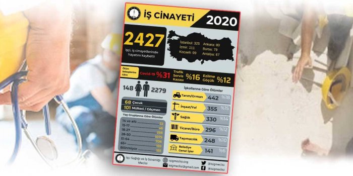 - İSİG’in 2020 Yılı İş Cinayetleri Raporu’na göre; en az 2 bin 427 işçi katledildi.