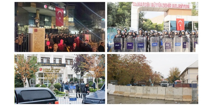 Raporda, “Verilerimize göre Êlih’te 219 kişi gözaltına alındı, 37’i tutuklanırken, 115 kişiye adli kontrol (5 kişiye ev hapsi) verildi. Xelfetî’de Toplantı ve Gösteri Yürüyüşüne katılan 27 kişi gözaltına alındı. 1’i çocuk 12 kişi tutuklandı. 15 kişi ise adli kontrolle serbest bırakıldı. Mêrdîn’de 41 kişi gözaltına alındı. 9 kişi tutuklandı, 20 kişi adlı kontrolle serbest bırakıldı. Dêrsim’de 29 kişi gözaltına alındı. 11 kişi tutuklandı,15 kişi adlı kontrolle serbest bırakıldı. Colemêrg kayyım ve protestolar nedeniyle ise 26 kişi gözaltına alındı. Akdeniz’de ise kayyım nedeniyle yapılan operasyonda Belediye eşbaşkanları da dahil olmak üzere 5 kişi tutuklanmıştır. Protestolarda da 40 kişi gözaltına alındı, 16 kişi tutuklandı ve 17 kişi adli kontrolle serbest bırakıldı. İstanbul’da kayyım için acılan soruşturma, sosyal medya paylaşımı ve toplantı göster yürüyüşleri nedeniyle 25 kişi gözaltına alınmış, 17 kişi tutuklanmıştır” denildi. İSTANBUL