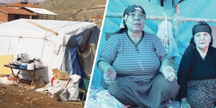 Aynı köyde alzheimer hastası 105 yaşındaki Zeliha Çelebi’nin röportaj sırasında “Keşke enkaz altında kalaydım” sözlerine karşı kızı Elif Yalçın, “Evimiz ağır hasar gördü. Annemin hastalığından kaynaklı sık sık tuvalet ihtiyacı oluyor. Gün içinde tuvalet ihtiyacını hasarlı eve götürerek karşılıyoruz. Yürüyemediği için onu taşımak zorundayız. Yine banyo ihtiyacını çok zor koşullarda sağlayabiliyoruz” dedi. Defalarca çadır talebinde bulunmasına rağmen verilmediğini belirten Yalçın, "Kayısı toplamada kullandığımız brandalardan barınak oluşturduk. Helikopterlerden sadece dört beş tane çadır atıldı. Annemi yalnız bırakıp almaya gidemiyorduk" derken annesi sözünü keserek, “Sen neden beni getirdin? Ben kalırdım evde, yıkılsa benim başıma yıkılırdı. Kurtulurdum. Ölüm bu koşullarda kalmaktan daha iyi değil mi?” diye tepki gösterdi.