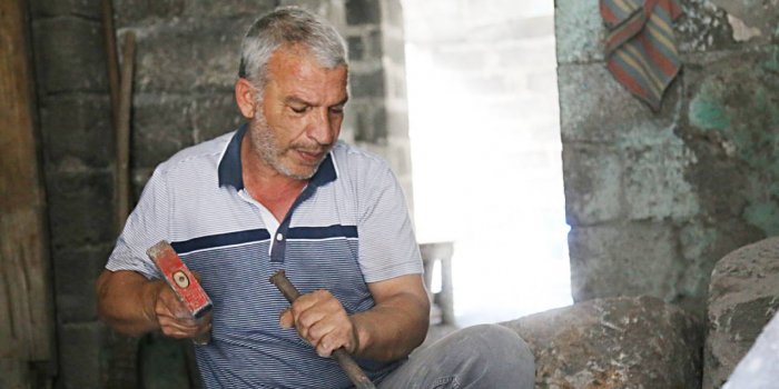 Amed’de kepçe operatörlüğünü bırakan 50 yaşındaki Cuma Balıkçı, Sur ilçesinde bulunan evinde babasından öğrendiği taş sanatı mirasını günümüze kadar getirdi. Taşla farklı bir bağ kurduğunu söyleyen alıkçı, eşi ve çocuklarıyla Alipaşa Mahallesi’ndeki tarihi bir evde yaşıyor. Surda sokağa çıkma yasaklarında da son ana kadar evini terk etmeyen Balıkçı, yasaklar kalktıktan sonra evine geri dönüyor.