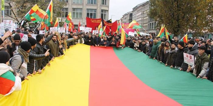 Eylemin toplanma alanında Kürt halkına yönelik Almanya’daki kriminalizasyon politikalarına, Almanya-Türkiye çıkar ilişkilerine ve bu temelde halen süren PKK yasağına dikkat çekilen konuşmalar yapıldı. Med-Kurd adına Menderes Canbeg, “Alman devleti 1993’te hukuki olmayan bir gerekçe ile PKK’yi yasakladı. Alınan bu karar tamamen siyasiydi, hiçbir hukuki yanı yoktu. Biz bugün burada toplandığımız için binlerce Alman polisini buraya yığmışlar. Bir yandan Erdoğan ile görüştüler, diğer yandan burada provokasyon yapıyorlar” diye belirtti.