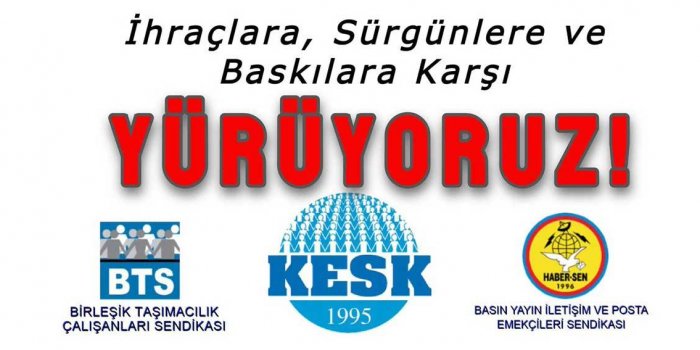 Kamu Emekçileri Sendikaları Konfederasyonu’na (KESK) bağlı Birleşik Taşımacılık Çalışanları Sendikası (BTS) ve Basın Yayın İletişim ve Posta Emekçileri Sendikası (Haber-Sen) Ulaştırma Bakanlığı’nda faaliyet gösteren üye, yönetici ve temsilcilerine yönelik baskı, sürgün ve ihraçların geri alınması talebiyle Ankara’ya yürüyecek.
