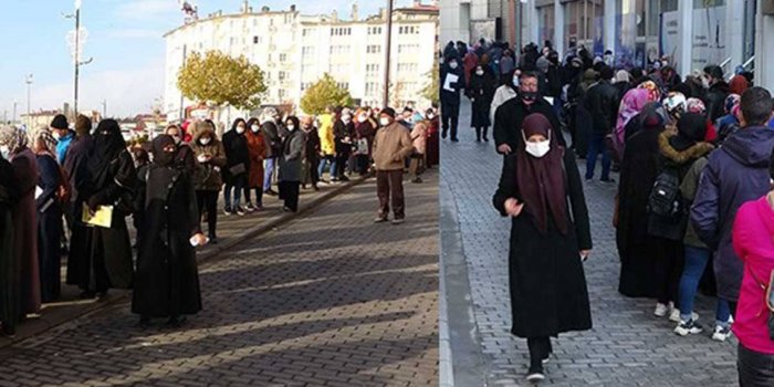 Sivas'ta bir sosyal yardımlaşma derneği tarafından ihtiyaç sahiplerine 500 TL'lik yakacak yardımı yapılacağının duyurulması, yardımdan istifade etmek isteyenlere Kovid-19 salgınını unutturdu. Derneğin bulunduğu Sularbaşı Mahallesi’nde günün ilk saatlerinden itibaren birikmeler başladı. İki sokağı kaplayan sonu görünmeyen kuyruklar oluştu. Dernek yetkilileri ve polis ekipleri sosyal mesafeyi sağlayabilmek için uzun süre mücadele etti. Polis araçlarından uyarı anonsları yapıldı. Salgın tehlikesine rağmen hiç kimse sıradan çıkmak istemedi. Zaman zaman kuyrukta sıra tartışmaları da yaşandı.