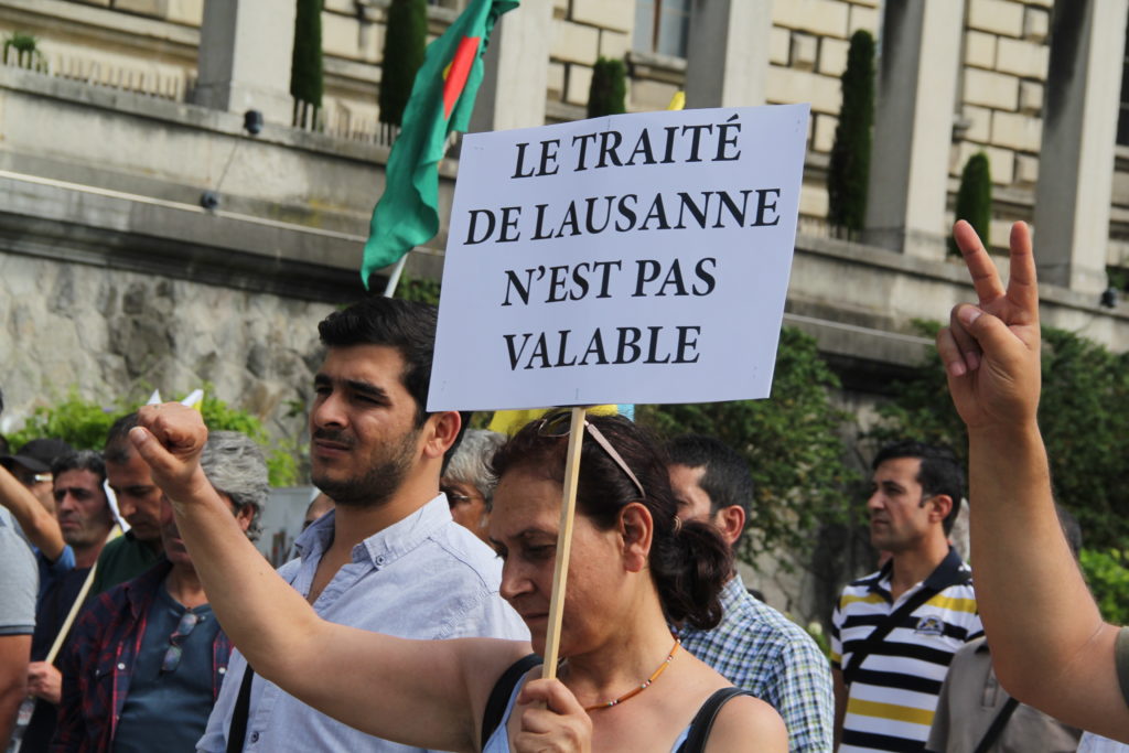 İsviçre’nin Lozan kentindeki Riponne Place’da bir araya gelen Kürdistanlılar ve dostları, buradan Ouchy’de bulunan antlaşmanın yapıldığı binanın önüne kadar bir yürüyüş gerçekleştirdi.