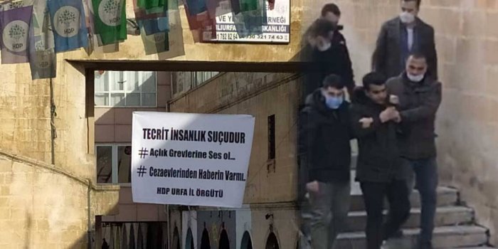 - Halkların Demokratik Partisi (HDP) Urfa İl Örgütü’nün cezaevlerinde devam eden süresiz- dönüşümlü açlık grevine dikkat çekmek için İl binasına astığı pankart, polisler tarafından indirilmek istendi.