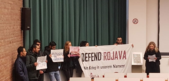 Almanya’nın Köln kentindeki Köln Üniversitesi’nde Tevgera Ciwanên Şoreşger ve Young Struggle üyeleri Leyla Güven ile dayanışma eylemi düzenledi. Rojava’ya yönelik Türk devletinin işgal saldırılarının da protesto edildiği eylemde, Alman devletinin Türkiye ile işbirliğine dikkat çekildi. DTK Eş Başkanı ve HDP Hakkari Milletvekili Leyla Güven ile dayanışma çağrısının da yapıldığı eylemde, eylemciler, birçok derse ve kantine ani bir şekilde girerek pankart açtı ve konuşma yaptı.
