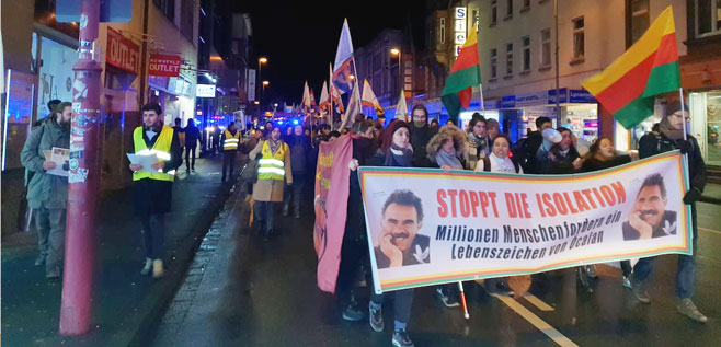 Almanya’nın Marburg kentinde de Öcalan üzerindeki tecrit protesto edilirken, Leyla Güven başta olmak üzere açlık grevi direnişçileri selamlandı. Marburg Halk Meclisi, Kürdistan Öğrenciler Birliği (YXK) ve Alman dostlarının organize ettiği ve merkezi tren garından Marktplatz’a kadar süren yürüyüşe yaklaşık 250 kişi katıldı.