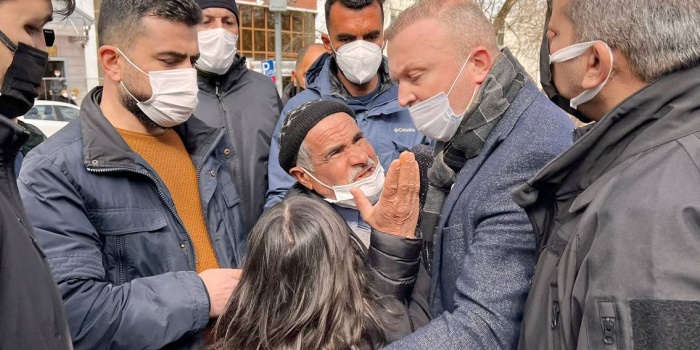 Adalet Bakanlığı önünde bekleyen aileyi, Kamu Emekçiler Sendikası Konfedarasyonu’na (KESK) bağlı kadınlar ziyarette bulundu. Aile ile görüşen KESK’li kadınlar, bakanlık önünden ayrılır ayrılmaz polis saldırdı. Polis baba Halit Doku’yu yerlerde sürükleyerek gözaltına alan alırken, kaldırımdan kalkmayan Bedriye Doku’yu ise zorla araca bindirdi.