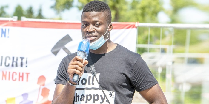 Almanya’ya vardıktan sonra kiliselere bağlı hayır kurumunda tercümanlığa başlıyor. Bu sürede, Afrika’dan gelenlerin yüzde 90’ının iltica başvurularına ret aldıklarını öğreniyor: "Birçok mülteci bu nedenle psikolojik sorunlar yaşıyor. Bu yüzden birkaç mülteci toplanıp örgütlendik ve mültecilerin sınır dışı edilmelerini protesto etmeye karar verdik. Aktif mücadeleye bu şekilde başladım ve şu an Mültecilerle Dayanışma Dostluk Grubu’nun sözcüsü olarak çalışmalarımı sürdürüyorum."