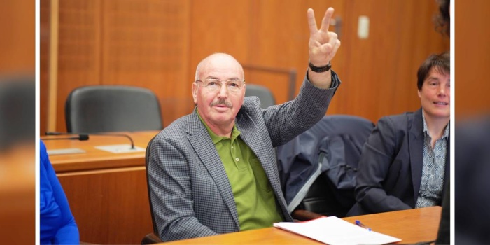 Abdullah Öcalan’ın savunması salonda bulunan izleyiciler tarafından "Freiheit für Öcalan" sloganıyla ayakta alkışlandı.