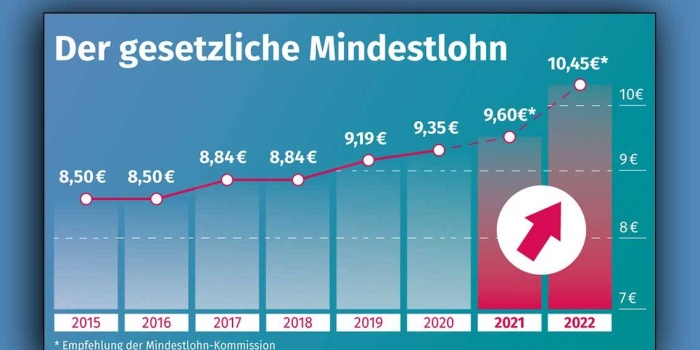 2022 yılında asgari ücret, saat başına mevcut 9,60 eurodan 9,82 euroya yükseldi. 2022 Temmuz ayı itibari ile saatte 10,45 euroya yükselecek. Koalisyon partileri, hükümet programında 2022 yılında asgari ücreti 12 euroya kadar yükseltmek istediklerine yer verdiler. Bu amaçla Asgari Ücret Komisyonu’nun zamlara ilişkin yeni önerilerde bulunması bekleniyor. Ayrıca branşlara göre değişik oranlarda zam yapılması da öngörülüyor.
