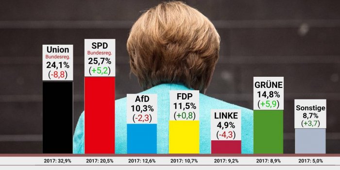Geçici resmi sonuçlara göre 709 sandalyeli Federal Meclis’te sandalye sayısı 735’e yükseldi. SPD’nin parlamentodaki sandalye sayısı 206, CDU/CSU’nun 196 olarak hesaplanıyor. Öte yandan farklı partilerden 19 Türkiyeli kökenli vekilin parlamentoya girmeye hak kazandığı belirtildi.