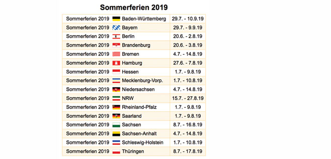 Almanya’da geçtiğimiz Perşembe günü Berlin ve Brandenburg eyaletlerinde yüzbinlerce öğrenci tatile girdi. Bugün Hamburg, bu hafta sonundan itibaren ise Hessen, Mecklenburg-Vorpommern, Rheinland-Pfalz, Saarland ve Schleswig-Holstein eyaletlerinde yaz tatili başlıyor. Diğer eyaletlerde ileriki haftalarda tatile girecek.
