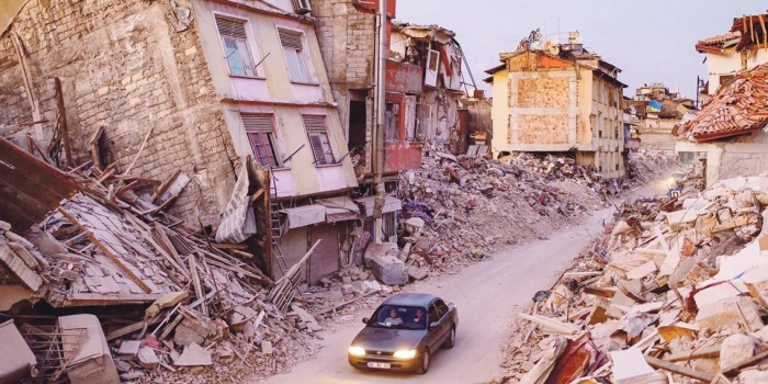 Yol, Türkiye'nin Hatay ilinin güney ucundaki Akdeniz kıyı şeridini dolanırken, ufukta tepe gibi görünen şeylerin ana hatları beliriyor. Ancak yaklaştıkça bunların devasa moloz yığınları olduğu anlaşılıyor, o kadar büyükler ki kendi topografyaları var, çünkü ağır makineler molozları ayıklaya ayıklaya bir sürü yarığın içine giriyor.