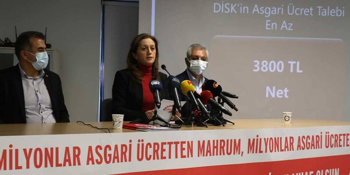- Asgari ücrete ilişkin hazırladıkları raporu ve eylem planını açıklayan DİSK Genel Başkanı Arzu Çerkezoğlu, asgari ücretin vergiden muaf olmasını ve en az 3 bin 800 TL olarak belirlenmesini istedi.