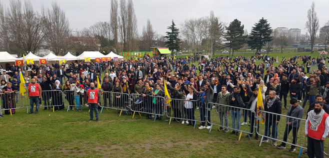 Fransa Komünist Parti Temsilcisi Pascal Torre, France Kürdistan Derneği yöneticileri, MRAP, Alternatif Libertaire gibi birçok Fransız kurum temsilcisi Kürt halkının yanında Newroz alanındaydı. Sahnede söz alan Kürt dostu Fransızlar açlık grevlerinin talebini sahiplendiklerini ifade ederek, Kürt Halk Önderi Abdullah Öcalan üzerindeki tecridin sona ermesi için Fransa ve Avrupa Birliği’nin harekete geçmesini istedi. MLKP ve Paris Pir Sultan Abdal Dergahı adına yapılan konuşmalarda da direnişçiler selamlanırken, sahne akışında Zazlooz, Zimanbaz Tori, Bineş Roj, Koma Zelal, Şero Bete, Dilana Roj Arya, Koma Zaroken Roje, Dino ve Kawa Kürtçe şarkılar ve halaylarıyla yer aldı. Park alanında çocuklar için oluşturulan oyun alanı dışında, Kürdistani kurumlar stand açarak halka hizmet verdi. Newroz kutlaması halaylar ve sloganlarla son buldu.