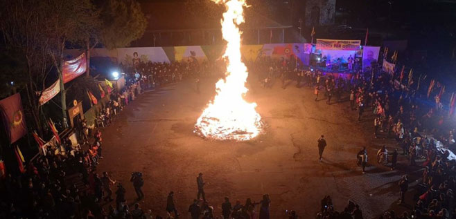 Kutlamada Koma Mezopotamya, Hevserok Ayagtin, Gürsel, Mem û Zin, Hesen Şerif, Yelda ve Ozan Aydın’ın söyledikleri türkü ve marşlar eşliğinde halaya duran kitle, sık sık “Bijî Serok Apo” sloganını attı.