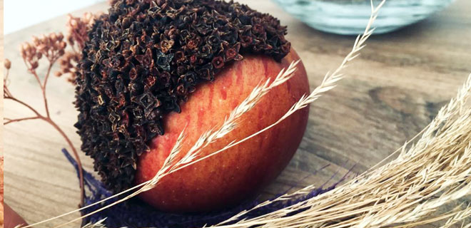 Karanfilleri elmaya batırmadan önce, karanfil tohumlarının üzerindeki yuvarlak (tomurcuk) kısımlarını tırnaklarımla eşeledim. Fakat bu işlemi yaparken karanfilin taç kısımlarına zarar vermemeniz gerekiyor. Bu yuvarlak kısımların alınması önemli, yoksa görüntü çok estetik görünmüyor.