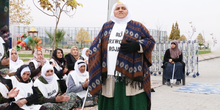“Rojava’daki topraklar gençlerin kanı ve mücadelesiyle kazanıldı. Hiç kimsenin kendi menfaati için ikinci kez onlarla savaşmaya hakkı yok” diyen Akbulut, şöyle devam etti: “Orada yine haksızlık, zulüm ve savaş var. Nöbet başladığı günden beri buradayız ve sonuna kadar da burada kalacağız. Burada yaşanan zulme karşı başkaldırıyoruz. Eyleme devam ettiğimiz için vicdanımız rahat. Evde oturunca vicdanımız rahat olmuyor. Bunun bir örneği de iki özgür basın çalışanı arkadaşımızın şehit olması. Onlar için yüreğimiz yanıyor. Hiçbir annenin gözyaşı dökmesini istemiyoruz. Bu yüzden bütün vicdanlı halka çağrım; Rojava için sessiz kalmasınlar. Herkesi burada görmek istiyoruz. Adalet sağlansın. Masaya oturulsun, ama silahlarla değil kalemlerle oturulsun. Kanın döküldüğü yerde savaş son bulmaz. Biz anneler olarak savaş istemiyoruz.” MÊRDÎN