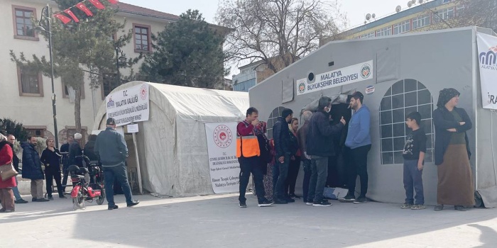 Malatya Valiliğinin önünde dün öğlen saatlerinde açılan Battalgazi İlçesi Çadır Başvuru Merkezi’ne giden yurttaşlar, şunları söyledi: “Yetkililer bizlere ‘size biraz zor sıra gelir’ dedi. Çünkü 10 binden fazla kişi çadır sırasında ve çadırların gelmesini bekliyor. Burada size sıra gelmez, ‘Yeşilyurt ilçesine gidin çadır başvurusu yapın’ dediler. Ancak sabah saatlerinde gitmemize rağmen ‘sırada 12 bin kişi var’ dediler. Depremin üzerinden bir ay geçmesine rağmen halen 22 bin kişi çadır sırası bekliyor. Bizler gibi gidip başvuru yapmadan dönen binlerce insan var. Hala burada su, gıda ve çadır ihtiyacı var. Gelen yetkililerin göz boyamak dışında bir şey yapmadıkları bu yaşadığımız durumdan anlaşılıyor.” MALATYA