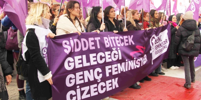 Genç Feministler Federasyonu İstanbul Üniversitesi Temsilcisi Mergen Arıtürk, kadına yönelik şiddet ve kadın cinayetlerinin artmasında iktidarın politikalarının rol oynadığını belirterek, yasaların uygulanmaması ve İstanbul Sözleşmesi’nin feshedilmesi gibi adımların şiddeti körüklediğini ifade etti.