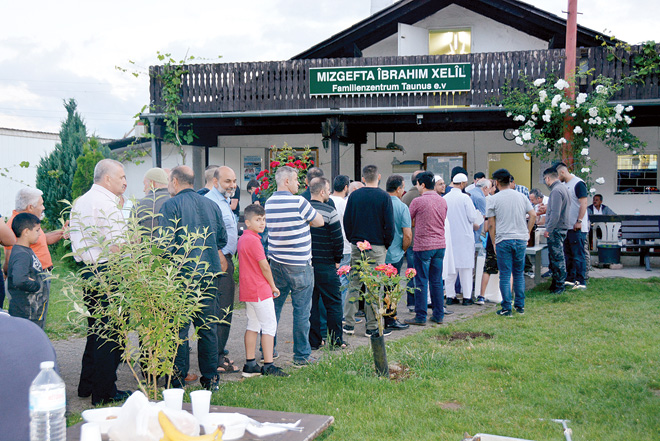 Rödelheim-Eschborn kentleri arasında faaliyet yürüten Mizgefta İbrahim Xelîl cemaati tarafından, Ramazan ayı boyunca Cuma, Cumartesi ve Pazar günleri iftar yemeği veriyor. 2014 yılından bu yana bu yana faaliyette olan caminin cemaatinin yüzde 70'i Rihalılar (Urfa) oluşuyor. Cemaatin diğer kesimleri ise Amed, Mêrdîn ve Îdir kentlerinden. İftar masrafları yaklaşık 100 aile tarafından 150 Euro karşılığında karşılanıyor. İftar günleri 300'den fazla Kürdistanlı bir araya gelerek Kurdistan'ı yaşıyor. Cami cemaati ve iftar konuklarını sadece Kurdistanlılardan oluşturmuyor Hindistan ve Pakistanlılar da var. Cami’de hutbeler ise Kürtçe ve Türkçe okunuyor.