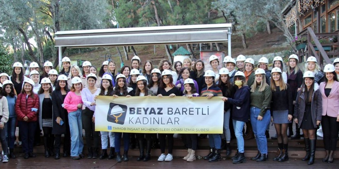 İnşaat Mühendisleri Odası İzmir Şubesi üyesi kadınlar, şantiyelerde erkek egemen yapıyı kırmak ve üniversitelerden mezun olacak kadın mühendislerin mesleğe emin adımlarla başlaması için 2019 yılında “Beyaz Baretli Kadınlar” projesi başlattı.
