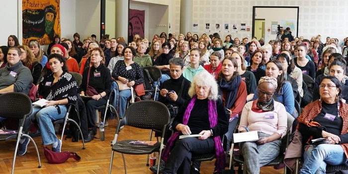 Dünyanın dört bir yanından kadınlar, mücadelelerini paylaşmak ve dayanışmalarını güçlendirmek için Berlin’de "3. Dünya savaşında kadınların öz örgütlenmesi ve öz savunması şiarı" gerçekleşen Kadın Barış Konferansı’nda bir araya geldi. Cenî Kürt Kadın Barış Bürosu, Feministische Organisierung Gemeinsam Kämpfen, Women Defend Rojava, KJAR ve Jugendkommune'nin ortaklığıyla düzenlenen konferansta Sudan, Tigray, Kongo, Kürdistan, Filistin, Belucistan gibi ülkelerde yaşanan savaş ve çatışma masaya yatırılırken Kürt kadın hareketinin etkisi, örgütlenme biçimi ve patriyarkaya karşı verilen mücadele tartışıldı.