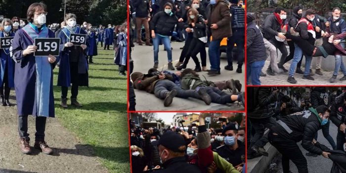 AKP Genel Başkanı ve Cumhurbaşkanı Recep T. Erdoğan’ın, AKP’li Prof. Dr. Melih Bulu’yu Boğaziçi Üniversitesi’nin rektörlüğüne atamasına karşı başlayan protestolar devam ediyor. 4 Ocak’tan itibaren süren eylemler, önceki gün ve dün sert saldırılarla karşılaştı. LGBTİ+ bireyi öğrencilerin tutuklanmasına tepki gösteren öğrenciler, önceki gün öğleden sonra üniversite rektörlük binası önünde toplandı. Etiler Metrosu ve Güney kapısından giriş yapmak isteyen öğrenciler, polisin saldırısına maruz kaldı. Polisi, öğrencilere, ”Aşağıya bak, toplu gezmek yok” diyerek saldırması dikkat çekti. Onlarca öğrenci gözaltına alındı.