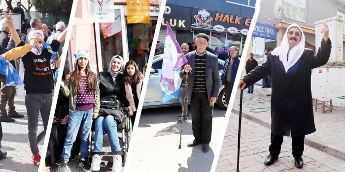 Halkın içerisinde dolanıyorum, soruyorum... Tam o anda bir grup yurttaş beni ona doğru götürüyor. Köyü uzak ama gelmiş... Hemen kendimi tanıtıp uzanıp elini öpmek istiyorum ama izin vermiyor, kocaman açtığı kollarıyla sımsıkı sarılıyor. Onun da çağrısı var elbet: "Halkımız partisine sahip çıksın. Seçim hepimize hayırlı olsun." Kısa bir sohbetin ardından heyeti görmek istediğini söylüyor, hemen heyetin yanına götürüyoruz. Seçim bürosunun açılışını da heyet ile birlikte Apê Ali Rıza yapıyor. Bunu görünce burada yapılanın seçimin ötesinde anlamları olduğunu düşünüyorum. Herkes bir oy kullanır da buradaki her bir oyun arkasında tarihi bir hikaye olduğunu seziyorum.