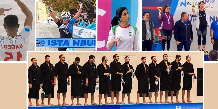 - İran Milli Sutopu Takımı’nın oyuncuları, Tayland’ın başkenti Bangkok’ta düzenlenen Asya Şampiyonası’nda İran ulusal marşına eşlik etmedi. İran Milli Plaj Futbolu Takımı ve İran Güreş Takımı’nın oyuncuları da benzer tavırlar sergiledi.