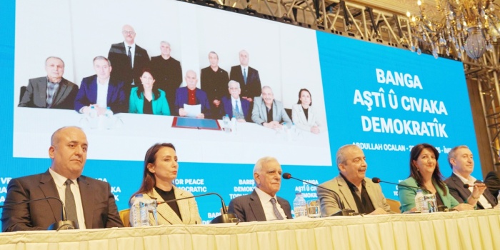 Kürt Halk Önderi Abdullah Öcalan önceki gün İmralı Cezaevi’nden diğer tutsaklar ve DEM Parti heyeti ile birlikte ‘Barış ve Demokratik Toplum’ çağrısı yaptı. Kürt Halk Önderi Abdullah Öcalan, Cumhuriyetin ikinci yüzyılının ancak demokrasiyle taçlandırıldığında kalıcı ve kardeşçe bir sürekliliğe sahip olabileceğini söyledi. Kürt Halk Önderi, günümüzde çok kırılgan hâl alan tarihsel ilişkiyi, kardeşlik ruhu içinde inançları da göz ardı etmeden yeniden düzenlemenin esas görev olduğunu vurguladı. "Demokrasi dışı bir yol yoktur. Olamaz. Demokratik uzlaşma temel yöntemdir" diyen Öcalan, silah bırakma; kongresini toplayıp kendini feshetme çağrısında bulundu ve bunun tarihi sorumluluğunu üstlendiğini belirtti. Çağrıyı paylaşan heyet üyelerinden Sırrı Süreyya Önder, şu sözünü de ekledi: "Şüphesiz pratikte silahların bırakılması ve PKK'nin kendini feshi, demokratik siyaset ve hukuki boyutun tanınmasını gerektirir."