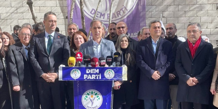 Bir hakkın teslimi için hep birlikte tepki vermek için buradayız. Kabul etmiyoruz, etmeyeceğiz; teslim olmuyoruz, olmayacağız. İrademizi vermiyoruz, vermeyeceğiz. Bunu hep birlikte yapacağız. Bu sadece Van’ın sorunu değil, 86 milyonun sorunu. Hukuku, hukuk kurallarını, Anayasa'yı ihlale seyirci kalırsak hiçbir seçimin anlamı olmaz. Susarsak bir gün herkesin kapısı sabah 06.00’da çalınır. O yüzden demokrasi, hukuk ve adalet için hep birlikte olacağız.”