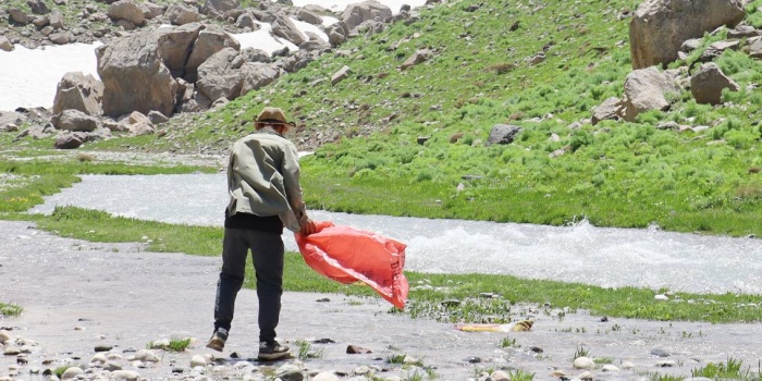 Derweş Eli, biriken çöpleri çoğu zaman kendilerinin topladığını belirtti ve ekledi: “Dikkat çekilmesi gereken başka nokta da farklı bölgelerde yakılan çöpler, bunun çevrenin temizliğine hiçbir faydası yok. Yakılan çöpler, bırakılan çöplere eşit derecede buzullara ve doğaya zarar veriyor. Vadiyi besleyen su kaynakları bu buzullardan başlıyor. Ne yazık ki günden güne kirleniyor ve çok zaman geçmeden kullanılamaz hale gelecek.”