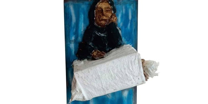 Bozan, Kürdistan’daki ölümlere dikkati çeken “Çuval” temalı çalışması ile Roboski, Sur ve Cizre gibi katliamları konu alıyor.