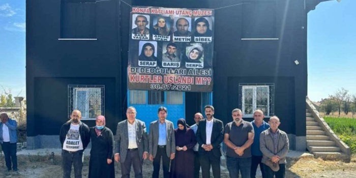 Açıklamada konuşan Ali Bozan, duruşma salonunda şekli bir yargılamanın yapıldığına dikkat çekti. Dedeoğluları ailesinin bütün taleplerinin reddedildiğini ifade eden Bozan, “Dedeoğluları ailesine yönelik 12 Mayıs saldırısı sonrasında Konya mülki makamları, görevini gereği gibi yerine getirmiş olsaydı Dedeoğulları ailesi katledilmeyecekti. Bu evde göz göre göre bir katliam yaşandı. Bu katliam Kürtlere yönelik bir katliamdı. Bizler bu katliamı unutmayacağız, unutturmayacağız’ diyoruz” ifadelerini kullandı.