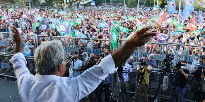 Halkların Demokratik Partisi (HDP), “Çözüm Biz’de, savaşa ve sömürüye hayır” şiarıyla önceki gün Amed'in istasyon Meydanı’nda düzenlediği mitinge, on binlerce kişi katıldı. Mitingde, HDP Eşbaşkanı Mithat Sancar ile Demokratik Toplum Kongresi (DTK) Eş Başkanı Berdan Öztürk, Demokratik Bölgeler Partisi (DBP) Saliha Aydeniz birer konuşma yaptı. Mitinge Özgür Kadın Hareketi (TJA), Barış Anneleri Meclisi, TUAY-DER, MEBYA-DER, MED-DER, TUHAD-FED, Roza Kadın Derneği, ÖHD, İHD, DİK, GÖÇ-DER, Dicle Fırat Gazeteciler Derneği (DFG), 78’ler Derneği temsilcileri de katıldı.