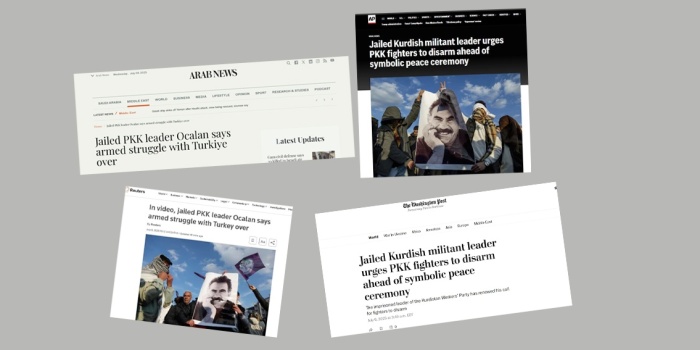 - Kürt Halk Önderi Abdullah Öcalan’ın 26 yıl sonra yayınlanan görüntülü çağrısı dünya basınında hızlıca manşetlere taşındı. Öcalan’ın “demokratik geçiş” ifadelerine ve Meclis'te silahsızlanma sürecini denetleyecek bir komisyon kurulması önerisine dikkat çekildi. Sîlemanî'de yapılacak tören “barış sürecinde ilk somut sembolik adım” olarak tanımlandı.